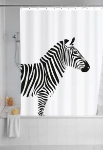 Wenko 20051100 zasłona prysznicowa z powłoką przeciw pleśnieniu, może być prana w pralce, 12 pierścieni do zawieszania, 100% poliester, motyw: zebra (wild), kolor: biały