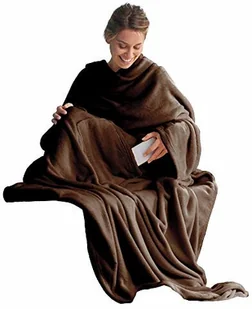 CelinaTex miękki koc XL z polaru (mikrofibry), z rękawami i z kieszenią na telefon komórkowy, wymiary 170 x 200 cm + 50 cm (kieszeń na stopy), brązowy 3803