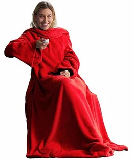 CelinaTex miękki koc z polaru (mikrofibry), z rękawami i z kieszenią na telefon komórkowy, wymiary 150 x 180 cm + 35 cm (kieszeń na stopy), czerwony 5000023
