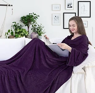 DecoKing koc z rękawami i kieszeniami 150 x 180 cm mikrofibra miękki ciepły fioletowy Lazy