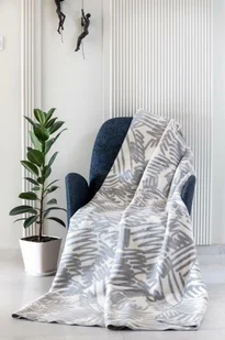 Koc bawełniany akrylowy 150x200 1703/1 mazaje szary kremowy wykończony szydełkiem