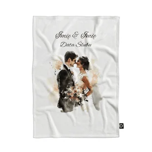 Koc pluszowy ślubny wzór LS17 | przysięga małżeńska 135 x 100 cm Tkanina: Niezwykle miękka dzianina z trwałym jednostronnym nadrukiem sublimacyjnym - 100% po...