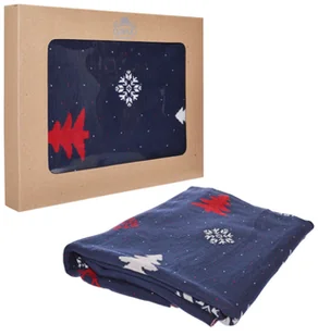 Koc w świąteczne wzory granatowy dwustronny, 100% bawełna, 125x150 cm