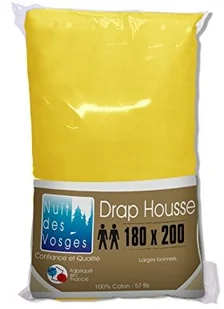 Nuit des Vosges 2101447 Cotoval prześcieradło z gumką, jednokolorowe, bawełna, jasnożółty, 180 x 200 cm