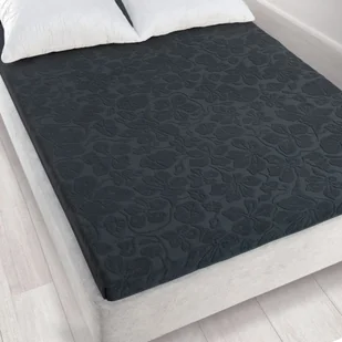 Prześcieradło bez gumki Gruba Frota żakardowy wzór kwiaty 150x205 grafitowy