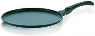 Klasyczna, płaska patelnia patelnia z serii Kerros, oferowana przez niemiecką markę Kela to doskonała propozycja ułatwiająca codzienne przygotowywanie naleśników, krokietów, wrapów i omletów. Patelnia została wykonana z odlewu aluminium, posiadającego bardzo dobre właściwości przewodzenia ciepła, dzięki czemu dno patelni równomiernie się nagrzewa. Wnętrze patelni pokryte jest specjalistyczną, nieprzywierającą powłoką Greblon C3+. Jest to trójwarstwowa powłoka teflonowo-ceramiczna o bardzo niskim współczynniku przyczepności, charakteryzująca się wysoką odpornością na ścieranie. Takie powłoki znajdują zastosowanie tylko w profesjonalnych naczyniach przeznaczonych do gastronomii. Smażone na tej patelni naleśniki nie przywierają do jej powierzchni i nie przypalają się. Z kolei niski rant ułatwia ich przerzucanie z jednej strony na drugą. Zaletą patelni jest także wygodny uchwyt z antypoślizgowego tworzywa. Patelnia może być używana na wszystkich typach kuchenek, również indukcyjnych oraz w piekarniku do 180 °C. Można ją myć w zmywarce.