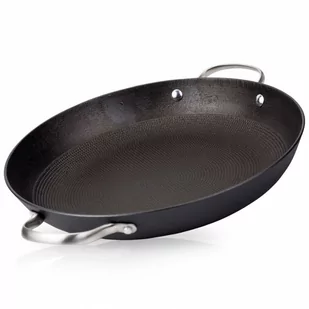 Naczynia nie wolno narażać na gwałtowne zmiany temperatury. Oryginalny produkt greckiej marki NAVA z linii naczyń Atlas. Wyprodukowano zgodnie z europejskimi standardami. <br/>Średnica 26 cmWysokość 8 cmSzerokość 26,5 cmKolor dominujący czarnyMateriał żeliwoDługość 35,5 cmWaga 1420 g