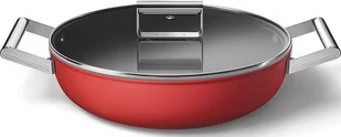 Patelnia głęboka SMEG CKFD2811RDM czerwony | 28cm | linia 50's STYLEGłęboka patelnia o średnicy 28 cm, średnica podstawy indukcyjnej 21,4 cm wykonana ze stali nierdzewnej, korpus z aluminium, wewnętrzna nieprzywierająca powłoka PTFE (czarna), uchwyt z polerowanej stali nierdzewnej AISI304, pokrywka na wyposażeniu