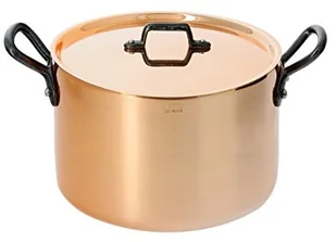Nitowane uchwyty/rękojeści wykonane są z żeliwa w typowym łukowatym designie. Praktyczny otwór na końcu umożliwia zawieszenie naczyń. Luksusowe miedziane naczynie kuchenne z wnętrzem ze stali nierdzewnej Odpowiednie do prezentacji i serwowania Profesjonalna jakość, doskonała przewodność cieplna Równomierne ogrzewanie zawartości (dno, ściany) Idealne do duszenia potraw Materiał składający się z 90% miedzi i 10% wewnętrznej warstwy ze stali nierdzewnej Grubość materiału 1,5 - 2 mm Nitowane żeliwne uchwyty o ergonomicznym kształcie Do wszystkich źródeł ciepła z wyjątkiem indukcji Francuska marka Premium de Buyer, od 1830 roku Konserwacja: Zewnętrzna warstwa miedzi może zmieniać odcień w miarę użytkowania. Użyj specjalnej pasty do miedzi, aby przywrócić jej pierwotny blask.
