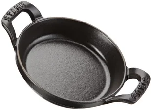 Staub - Okrągłe mini naczynie do zapiekania Sur la Table Minis 250 ml czarny Produktami znanej i cenionej marki Staub są niezawodne naczynia kuchenne o różnorodnych kształtach i ciekawych kolorach. Wśród nich znajdziemy między innymi masywne naczynia żeliwne. Okrągłe mini naczynie do zapiekania Sur la Table Minis 250 ml czarny przyda nam się do przyrządzania mini zapiekanek oraz mini pieczeni. Wyposażone jest w dwa wygodne uchwyty. Wierzch naczynia pokryty kolorową emalią, nakładaną wielowarstwowo i wypalaną w temperaturze rzędu 1000°C.