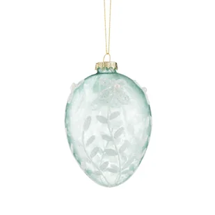 Bombka jajko szklane niebieskie w kwiaty 11,5 cm