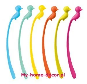 Praktyczne, kolorowe mieszadełka z serii Pi: P marki Koziol. Produkt został wykonany z najwyższej jakości tworzywa sztucznego. Mieszadełka w kształcie małego ptaszka z długim ogonem stanowią doskonałą dekorację. Mieszadełka można zahaczyć o o krawędź wysokiej szklanki.