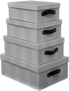 Pudełka kartonowe WAFFLE, 4 sztuki w komplecie, kolor szary Organizacja w domu może być prosta! Z pudełkami, pojemnikami i koszami do przechowywania dostępnymi w naszym sklepie, z łatwością doprowadzisz wszystkie swoje rzeczy do ładu i porządku. Sprawdź pełną gamę pojemników do przechowywania dostępnych na naszej stronie.