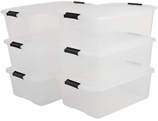 Iris Ohyama, Plastikowe pudełka do przechowywania z pokrywą i klipsami zamykającymi, 30 L, Zestaw 6, Bez BPA, Biuro, Salon, TB-30, Przezroczysty