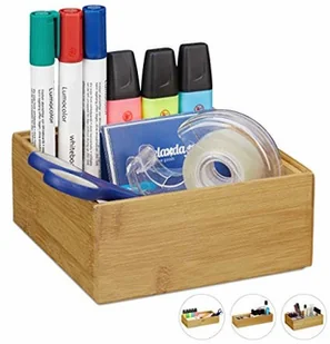 Relaxdays pudełko do przechowywania z bambusa, można układać w stos, naturalny wygląd, pudełko do przechowywania do kuchni, łazienki, wys. x szer. x gł.: 6,5 x 15 cm, kolor naturalny