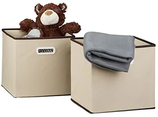 Relaxdays składanym pudełkiem podwójny zestaw, kwadratowe wys. x szer. x głęb. 30 x 30 x 30 cm, regał pudełko do przechowywania, Box, beżowy, 30 x 30 x 30 cm 10020572_127