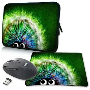 PEDEA Designerski pokrowiec ochronny na notebook torba do 15,6 cala (39,6 cm) z podkładką pod mysz i mysz bezprzewodową, Green Hedgehog