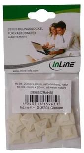 InLine® Podstawa mocująca do opasek kablowych Kwadratowa podstawa mocująca do opasek kablowych Wymiary: 20x20mm / 25x25mm / 30x30mm /40x40mm 10-pak samoprzylepny Kolor: Naturalny do opasek kablowych o szerokości do 4,8mm