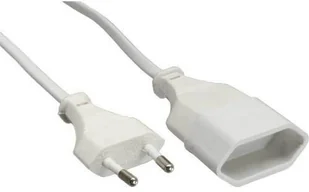 Przedłużacz z wtyczką Euro na złącze Euro, biały, 5mPrzedłużacz zasilania z wtyczką i złączemKolor: biały 2-biegunowy przedłużacz z wtyczkąbez styku uziemiającego. Powszechnie stosowany w całej Europie, jest idealny do przedłużania kabla sieciowego wielu urządzeń elektrycznych klasy II o maksymalnym poborze prądu 2,5 A, takich jak zewnętrzne dyski twarde, urządzenia peryferyjne audio/wideo, kalkulatory, radia i małe urządzenia gospodarstwa domowego. Europlug 2-pinowa wtyczka CEE 7/16 Maksymalne obciążenie 2,5A/250V Formowana wtyczka (odlew ciśnieniowy) Przedłużacz z wtyczkąna złącze biały, 5mPrzedłużacz z wtyczkąi złączemKolor: biały
