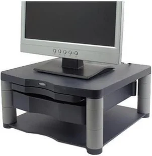 Dlaczego należy używać podstaw pod monitory $11 Aby zapobiec bólowi szyi i karku. Podstawki pozwalają na trzymanie głowy w naturalnej, pionowej pozycji. Umieść monitor na odpowiedniej wysokości. Podstawa pod monitor z szufladą/copyholderem Fellowes GRAFITOWA Pozwala na ustawienie monitora 21" (maks. o wadze 36 kg) na wygodnej dla użytkownika wysokości, ułatwia organizację miejsca pracy Trzy zestawy wsporników pozwalają uzyskać 5 różnych wysokości podstawy: od 64 do 165 mm W tylnej części podstawy znajdują się otwory ułatwiające prowadzenie kabli Tworzywo wykonane w 100% z recyklingu Szufladą i chowana podstawka na dokumenty Dostępna w kolorze grafitowym Wymiary: