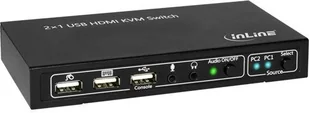 Przełączniki KVM InLine są przeznaczone do zastosowań biurowych i domowych, a także do monitorowania i sterowania wieloma komputerami z jednej stacji roboczej. Przełączniki KVM nie są jednak przystosowane do obsługi akcesoriów dla graczy, takich jak myszy i klawiatury z programowalnymi klawiszami specjalnymi, ani monitorów do gier o wysokiej częstotliwości od 120 Hz. Funkcja klawiszy skrótu dla klawiatury działa tylko na wyznaczonym porcie USB konsoli; sterowanie klawiszami skrótu nie jest możliwe po podłączeniu przez porty koncentratora USB. Krótka informacja: Przełącznik KVM INLINE 2x1 HDMI - Przełącznik KVM/Audio/USB - 2 porty KVM/Audio/USB - 1 użytkownik lokalny - Grupa Koncentratory i przełączniki biurkowe Producent InLine Producent Art.
