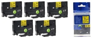 Taśma 5-pak zamiennik laminowana żółta o czarnym nadruku o szerokości 9 mm przeznaczona do urządzeń Brother.