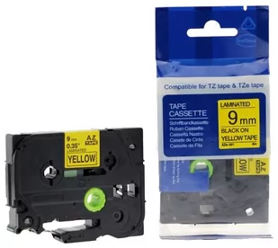 Taśma zamiennik laminowana żółta o czarnym nadruku o szerokości 9 mm przeznaczona do urządzeń Brother.