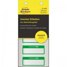 Tabliczki inwentaryzacyjne poliestrowe srebrne do opisu ręcznego Avery Zweckform; 50 szt., 50 x 20mm, zielone ramki, 1 pole na tekst /6908/