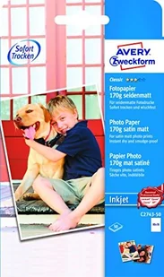 Avery Zweckform c2743 50 Classic Inkjet Photo Paper (A6, pokryte z jednej strony, jedwabiście matowy, 170 G/M) 50 arkuszy 4004182410271