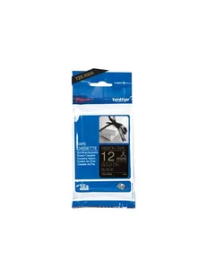 Widoczne opakowanie, Ilość w opakowaniu: 1 szt Pasek PTOUCH czarny/złoty TZE-R334 Urządzenia Tze 12-36 mm PT-H110 PT-E300VP PT-H500 PT-P750W PT-P900W Kolory nadruku: złoty 2 cm Długość taśmy: 4 m. Typ opakowania: Blister PTH100 Technologia druku: