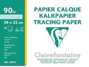 Clairefontaine 96873C – Teczka szkolna, 20 arkuszy papieru kalka, 24x32 cm, 90/95 g – wysoko transparentna – do rysunku technicznego