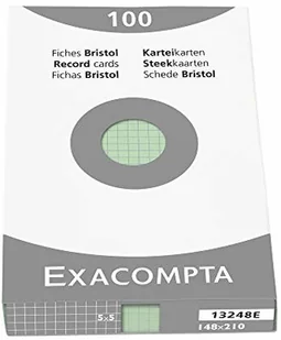 Exacompta 13248E Karty indeksowe - fiszki - nieperforowany karton - 148x210mm - w kratkę 5x5 - 100 sztuk - kolor: zielony