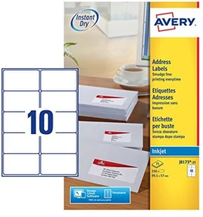 Avery etykiet adresowych przeznaczony do drukarek atramentowych oraz szybkim schnięciem, biały J8173-25