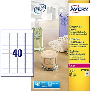 Etykiety przezroczyste Crystal Clear, przeznaczone do drukarek laserowych. Są błyszczące, zostały wykonane z przezroczystego materiału, który zapewnia produktom wyjątkowy, stylowy, nietuzinkowy wygląd. Idealnie nadają się do oznaczania szkła, plastiku, metalu, a także błyszczących powierzchni. Ich zalety to m. in. wodoodporność, odporność na smary i brud, a także odporność na temperaturę od -20 do +80 stopni Celsjusza.