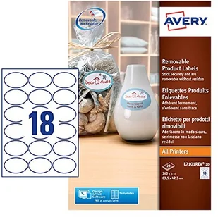 Avery l7101rev-20 owalne etykiety można zdjąć papieru 63,5 X 42,3 MM 360 sztuk, białe L7101REV-20.UK