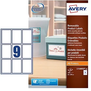 Avery samoprzylepne usuwalne etykiety, wszystkie drukarki, 9 etykiet na arkusz A4, 9 etykiet, bez pozostałości (L7108REV)