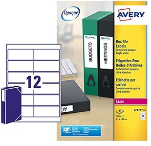 Avery L7176-25 etykiety do segregatorów atramentowych i laserowych (do segregatorów o średnicy 60 mm, 12 na arkusz, 41 x 100 mm) 300 etykiet