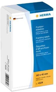 - pośrednie frankowanie listów ponadgabarytowych, paczek, paczek i rolek wysyłkowychDla kogo?- Urzędy pocztowe HERMA 4329 Etykiety do frankowania podwójne 163x45 mm 500 szt.