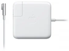 Zasilacz MagSafe 60 W firmy Apple (do MacBooka i 13-calowego MacBooka Pro) Zasilacz MagSafe o mocy 60 W wyposażony jest w magnetyczne złącze zasilania, które powoduje rozłączenie kabla przy nadmiernym naprężeniu i pomaga zabezpieczać go przed zniszczeniem lub zużyciem. Ponadto magnetyczne złącze zasilania ułatwia szybkie i bezpieczne podłączenie wtyczki do komputera. Po podłączeniu zapali się dioda LED położona w górnej części złącza zasilania. Dioda świecąca na żółto oznacza ładowanie notebooka, a kolor zielony wskazuje, że komputer został w pełni naładowany. Za pomocą dołączonego do zasilacza kabla zasilania można zwiększyć długość przewodu, natomiast zasilacz z wtyczką do gniazda ściennego (również w zestawie) doskonale sprawdza się w podróży.