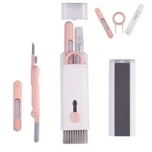 Czyścik Wielofunkcyjny zestaw czyszczący do słuchawek airpods klawiatur 7w1 Różowo-biały