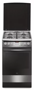 Amica 57GEH3.33HZpTa(Xx) kuchnia wolnostojąca gazowo-elektryczna Dane techniczne: Wysokość: 85 cm Szerokość: 50 cm Głębokość: 60 cm Kolor: Inox Klasa energetyczna: A Powierzchnia płyty: inox Pojemność piekarnika: 62 l Moc całko