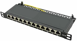 LogiLink Professional NP0066 ekranowany Cat 6A panel krosowy/rozdzielczy z 12 portami (10 cali), PoE i PoE+, połowa wysokości (0,5 jednostek wysokości), czarny