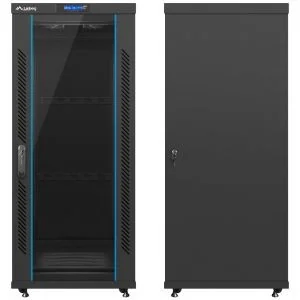Szafa stojąca marki Lanberg to wysokiej jakości produkt zaprojektowany z myślą o budowie rozległych struktur teleinformatycznych, montażu okablowania oraz sprzętu w standardzie rack 19" dla każdego instalatora, projektanta, integratora oraz administratora sieci. Konstrukcja sprawdzi się również w centrach danych, serwerowniach, instalacjach niskoprądowych, sieci telewizji kablowych, alarmowych, przeciwpożarowych, monitoringu, kontroli dostępu, CCTV oraz IP. Konstrukcja wykonana jest przy użyciu wysokiej jakości stali walcowanej na zimno, malowanej proszkowo. Szafa umożliwia pełną regulację głębokości pionowych szyn montażowych, a także jest wyposażona w drzwi przednie wykonane ze szkła hartowanego, z możliwością montażu prawo lub lewo stronnego. Do zestawu dołączone są demontowalne panele boczne oraz metalowe drzwi z zamkami.