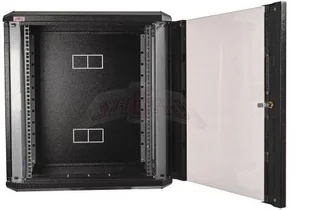 Szafa wisząca, teleinformatyczna typu SIDE-O o wymiarach 18U/400, z drzwiami przeszklonymi.
