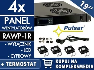 Panel przeznaczony do montażu w profilach RACK szafy RACK-owej. Wymusza on obieg powietrza wewnątrz szafy pomiędzy urządzeniami (np. rejestrator). Panel posiada rozłączny przewód 230VAC oraz rozłączny czujnik temperatury.