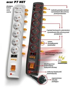 : Listwa zasilająca Acar P7 NET 1,5m 7 gniazd czarna