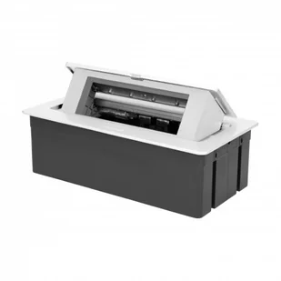 NOEN Kaseta meblowa wpuszczana w blat ze zintegrowaną ramką PCV na gniazda modułowe 3 x 45x45mm lub 6 x 22,5x45mm, przewód 1,5m, białe Pusta aluminiowa kaseta meblowa NOEN ze zintegrowaną ramką PVC wpuszczana w blat. Jest to uniwersalne rozwiązanie, które umożliwia zamocowanie 3 gniazd modułowych NOEN o wymiarach 45x45mm lub 6 gniazd o wymiarach 22,5x45mm (gniazda prądowe, HDMI, USB, RJ45, RJ11), w konfiguracji odpowiadającej preferencjom użytkownika. Urządzenie przeznaczone jest do montażu w biurkach, blatach i stołach. Posiada zamykaną pokrywę oraz przewód o długości 1,5m. Dostępne kolory: