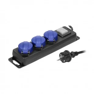 Przedłużacz warsztatowy bryzgoszczelny z wyłącznikiem IP44, 3 gniazda 2P+Z IP44, przewód gumowy, H05RR-F 3x1,5mm2, długość 3m $82$83$84$85$86 $87 Przedłużacz warsztatowy, bryzgoszczelny z wyłącznikiem i kablem w izolacji gumowej. $88 Posiada 3 gniazda sieciowe z uziemieniem i przesłonami torów prądowych oraz pokrywami uszczelniającymi, które chronią przed zabrudzeniami i wilgocią. $89 Zawieszka ułatwia montaż w bezpiecznym miejscu, a otwory służą do stałego montażu na stanowisku pracy. Długość kabla 3m.
