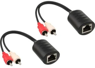 Te praktyczne adaptery wykorzystują kable krosowe do przesyłania sygnałów audio, dzięki czemu sygnały audio mogą być nawet przesyłane z pomieszczenia do pomieszczenia za pomocą pasywnego okablowania strukturalnego (bez aktywnych urządzeń sieciowych pomiędzy nimi). Zestaw składający się z 2 adapterów, nadajnika i odbiornika2x wtyczka RCA do gniazda RJ45maks. długość kabla krosowego 50 m, w zależności od przekroju przewodu i rezystancji stykówdla analogowych stereofonicznych sygnałów audioDługość kabla: 2x ok. 10 cm Te praktyczne adaptery wykorzystują kable krosowe do przesyłania sygnałów audio, co oznacza, że sygnały audio mogą być nawet przesyłane z pomieszczenia do pomieszczenia za pomocą pasywnego okablowania strukturalnego (bez aktywnych urządzeń sieciowych pomiędzy nimi). Zestaw składający się z 2 adapterów 2x wtyk RCA do gniazda RJ45 maks.