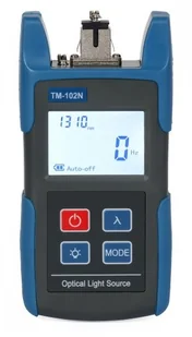 Źródło światła TM102N-SM to narzędzie niezbędne do dokonywania pomiarów tłumienia toru optycznego w sieciach FTTx. Pozwala na generowanie fali o określonej długości (1310/1550 nm) i mocy (-5 dBm), dzięki czemu pomiar jest dokładny i pewny.